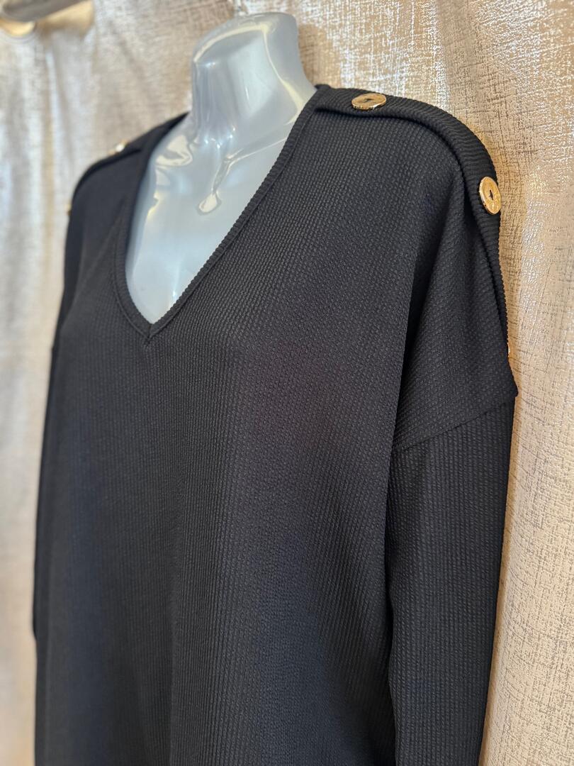 CARLY long sleeve set with gold button detail – BLACK textured fabric