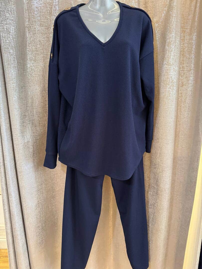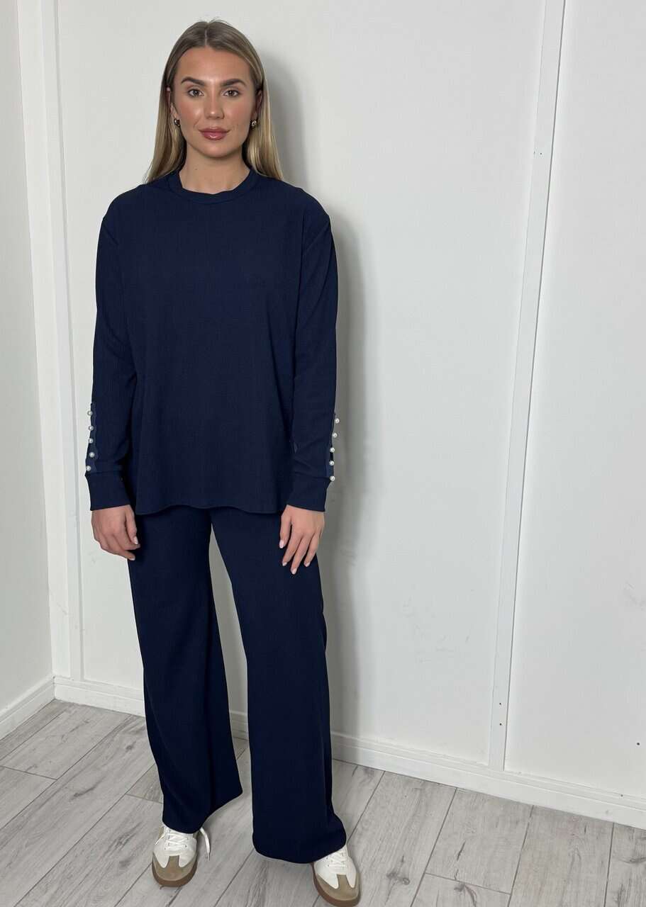 CARLY long sleeve set with gold button detail – NAVY