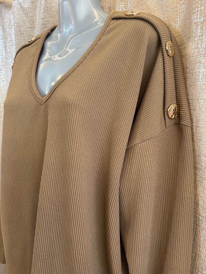 CARLY long sleeve set with gold button detail – MOCHA
