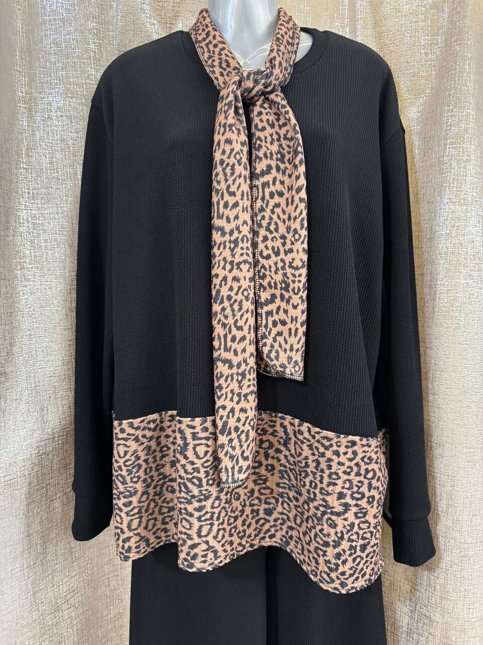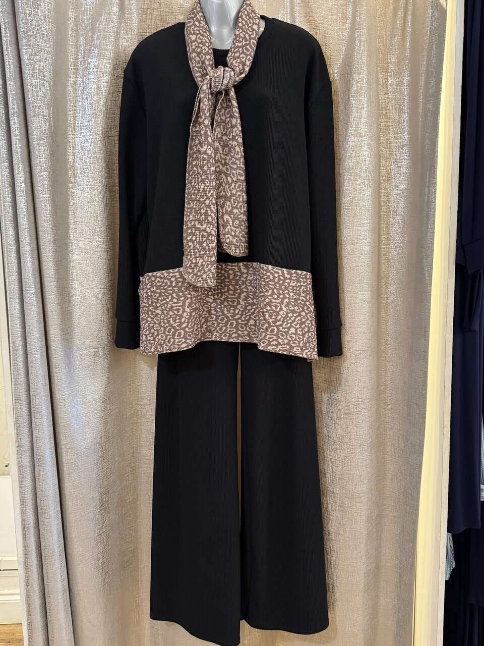MEGAN scarf set with wide leg trouser – Leopard black