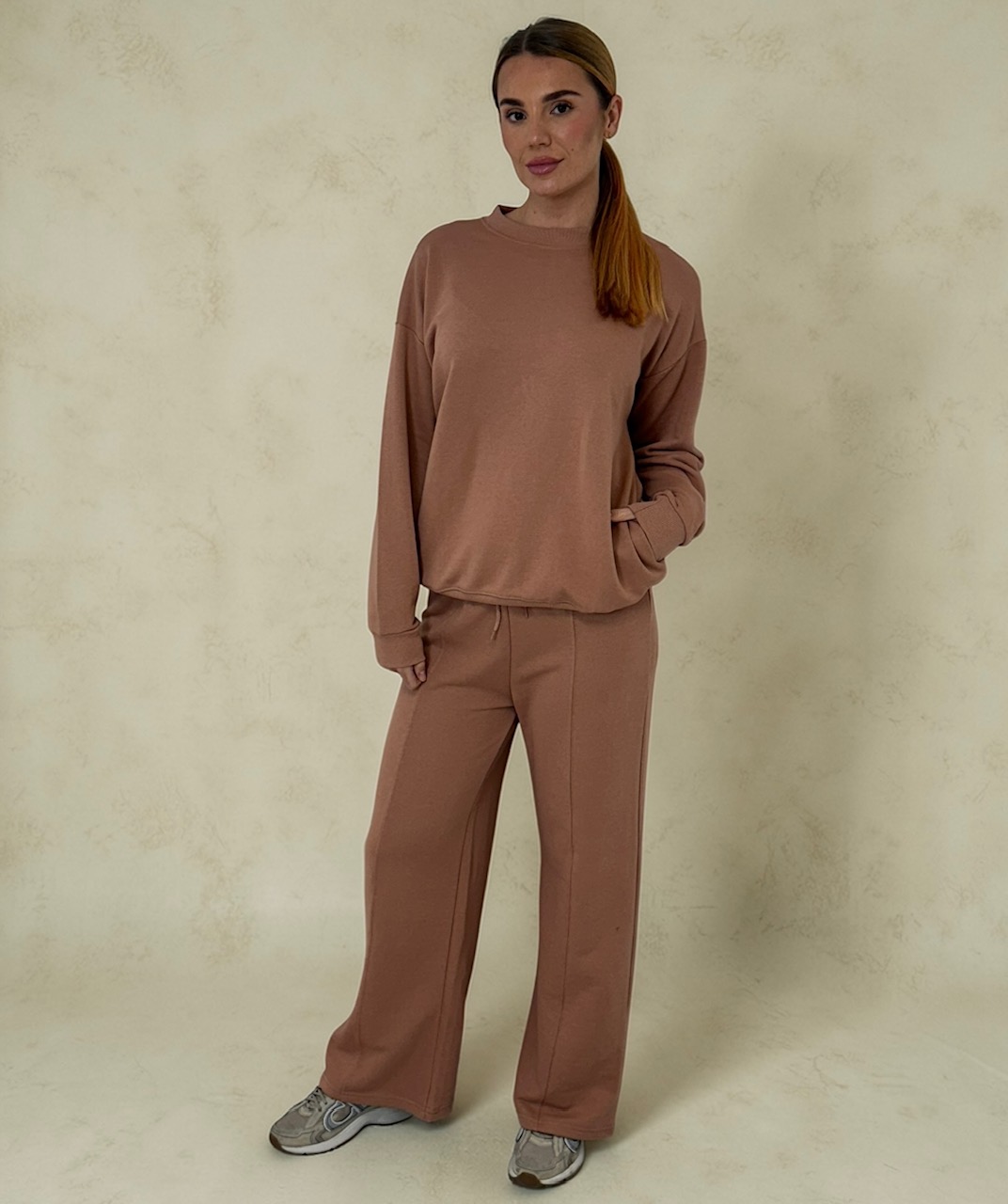 Mia Luxury Crew neck Jogger set sizes 8 to 20 – SOFT KHAKI