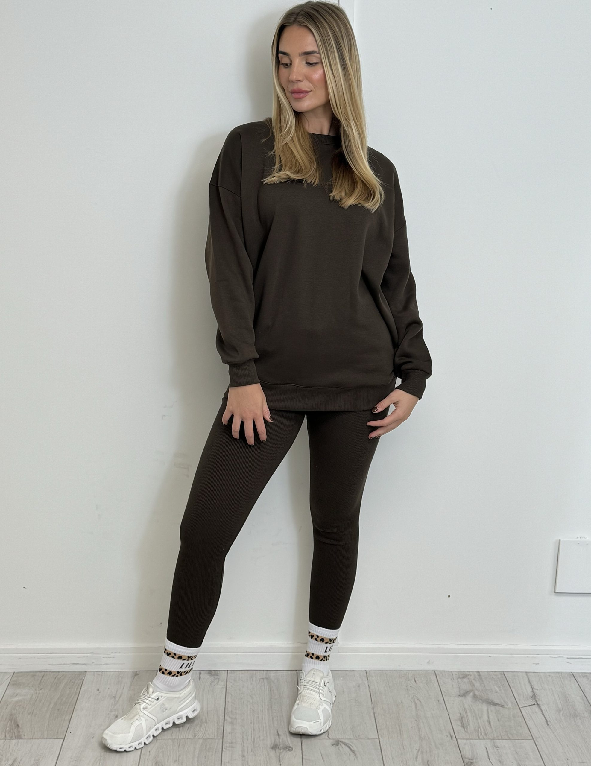 The AMBER set is available in many stunning colours. The relaxed fit crew neck jumper paired with a sleek ribbed legging creates the perfect combination of comfort and stlye. The machine washable fabric made from a soft knit cotton/polyester blend ensures long-lasting wear.