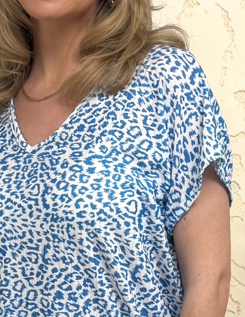 CARLY V Neck Set in BLUE LEOPARD sizes 8 to 24