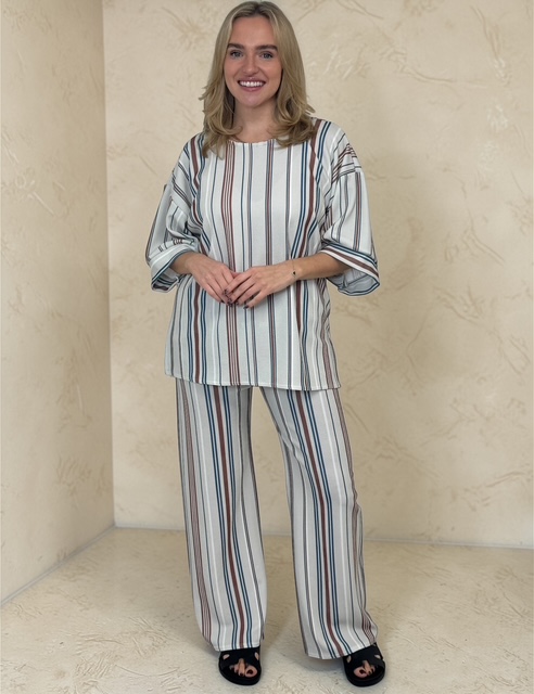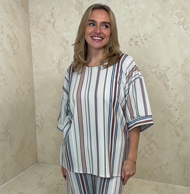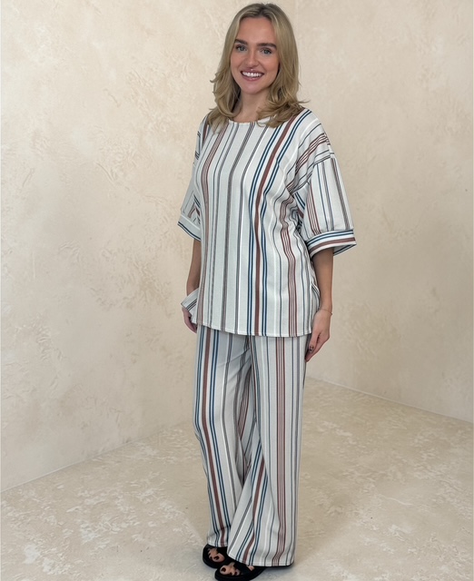 JESSIE stripe set with wide leg – NAVY AND MOCHA