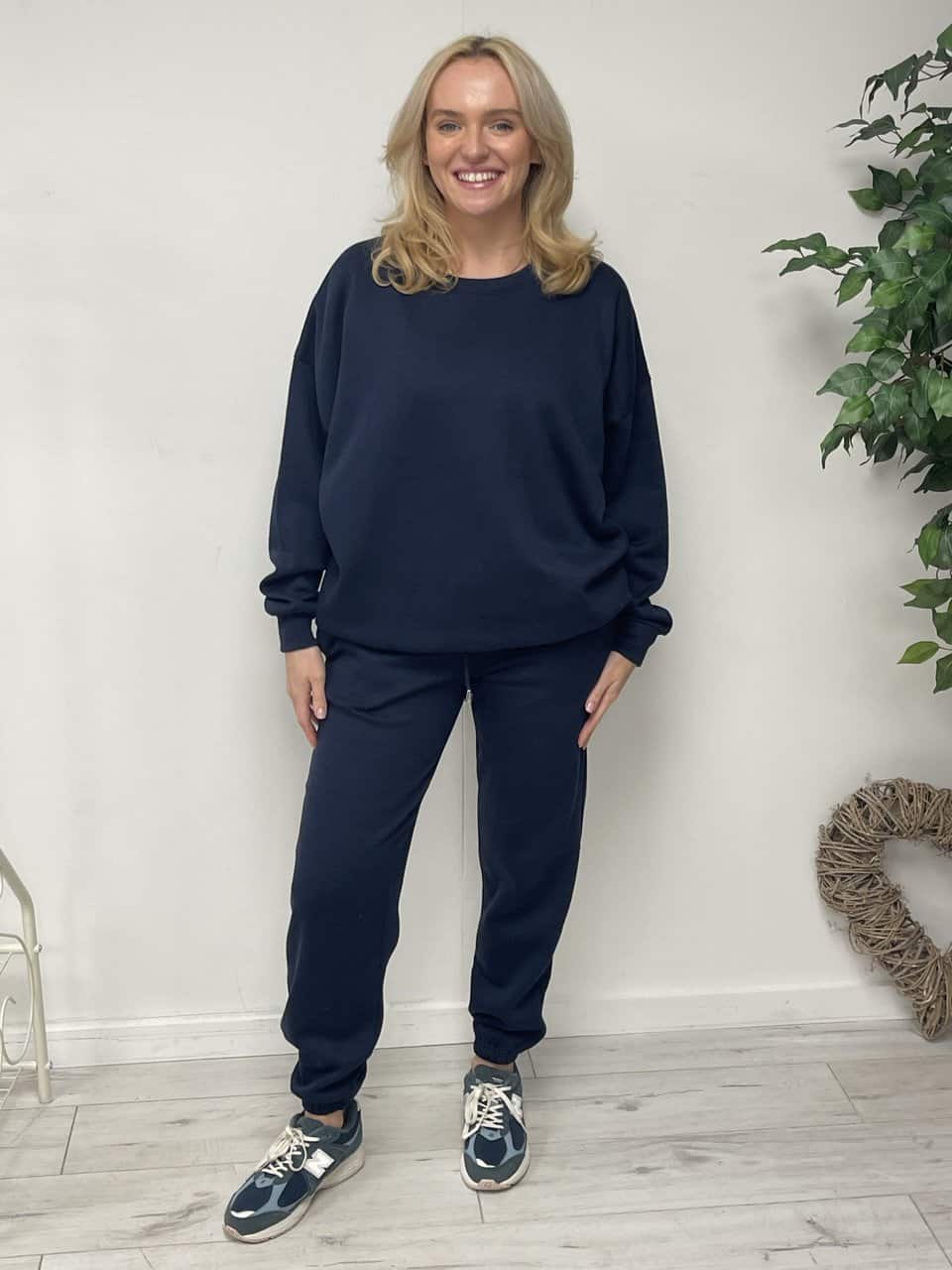 Mia Luxury Crew neck Jogger set sizes 8 to 20 – NAVY