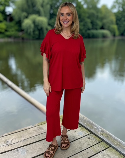 Jenny double frill sleeve with crop trouser – RED